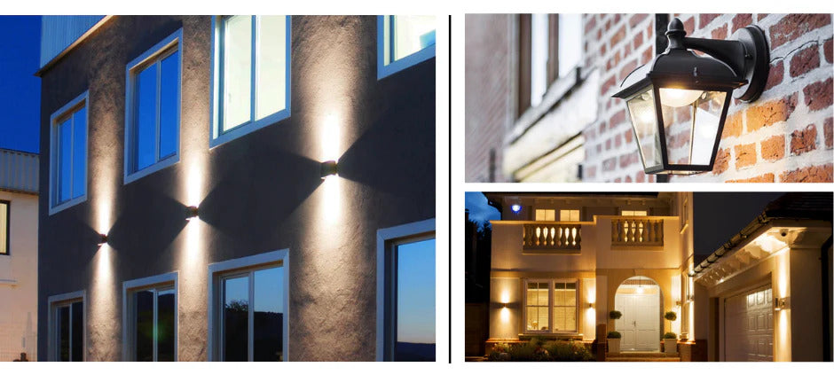 To light up columns and pillars at the facade of the house, a wall bracket which shines both upwards and downwards is ideal. These lights create a decorative beam angle on the pillar and highlight textures on the wall. Up/ down lights tend to elongate the pillars or columns of a house, adding a dramatic flare to the exterior design.