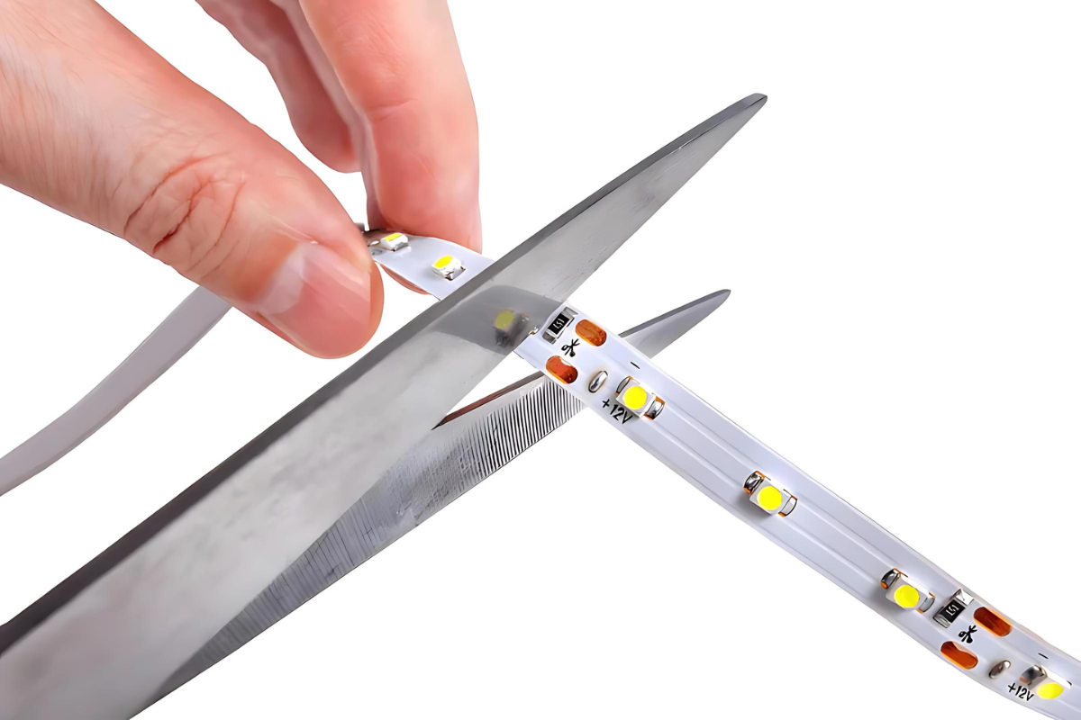 If the strip is cut elsewhere, it will interrupt the circuit and result in several or all of the LED chips becoming unusable. Use a sharp knife or pair of scissors to cut along the line. Then, use one of elekzon's strip-to-wire fast connectors to connect it to the power supply, or use a strip-to-strip fast connector to lengthen the light or manoeuvre it around corners.